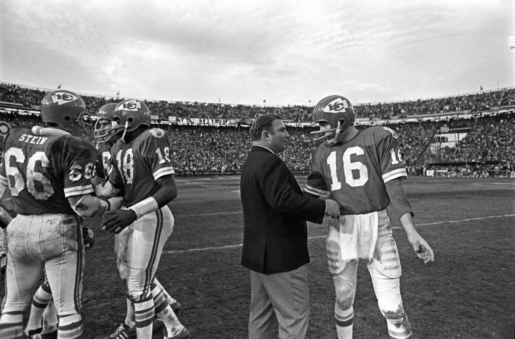 Also in this game NFL Films’ Ed Sabol had knocked on Stram’s hotel room door the night before to ask him to wear a microphone for the game. Stram answered the door without his toupee, but still agreed. His banter on the sideline was priceless. “That’s a good mark there, Mr Official. Yes, Sir. Good mark.” Both Hank Stram and Len Dawson were inducted into the Pro Football Hall of Fame.