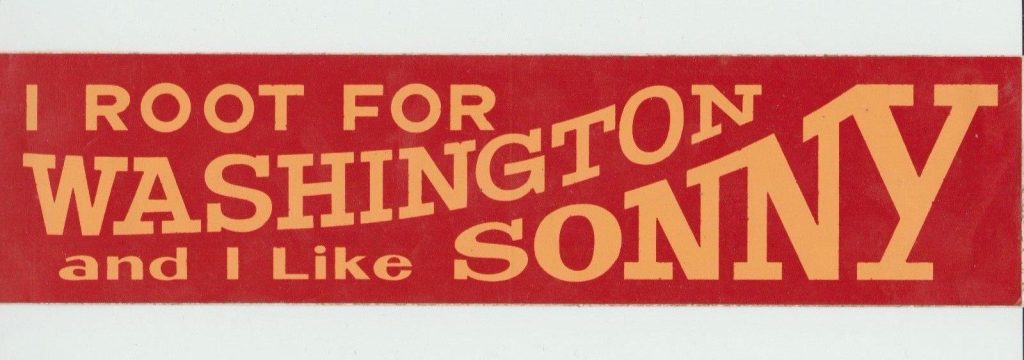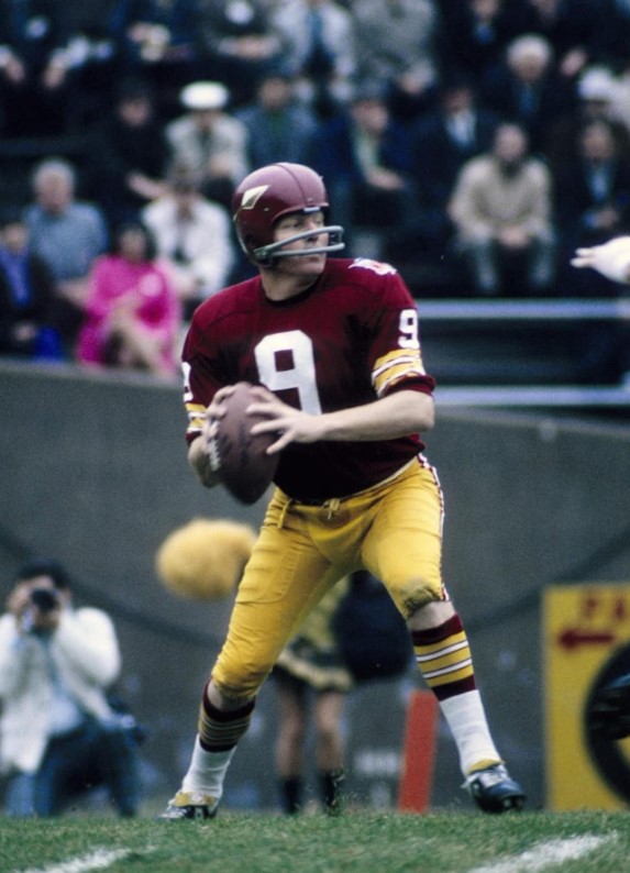 Still, the old guy could chuck the ball around. These were the days when there were the “I like Sonny” “I like Billy” bumper stickers. Football at the time was a different game than today where the Quarterback called the plays. George Allen was a Defensive-minded guy. Billy Kilmer was his conservative kind of guy. The two had a bit of a time-sharing situation. Billy would start. If the team stayed ahead all game he would stay in. If it fell behind Sonny was behind the “Break Glass” panel.