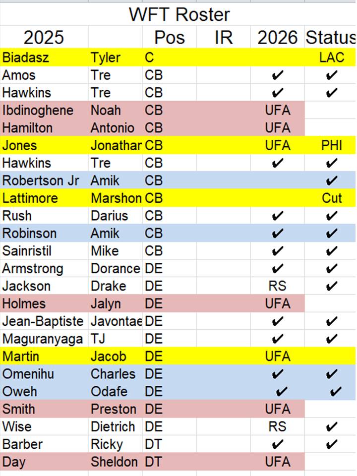 For the moment here is the updated Roster Tracker. We’ll start to break down the various position group rooms in a bit as more things take shape.